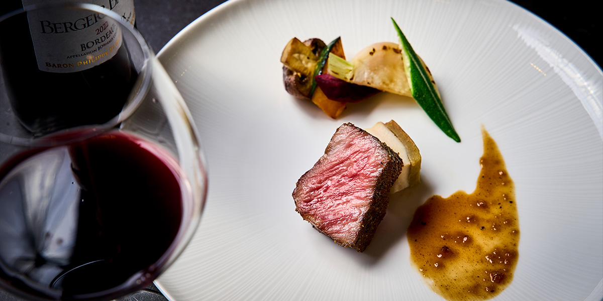 旬の食材を生かした料理を、一皿ずつ丁寧にご提供。前菜からメイン、デザートまでフルコースでお楽しみいただけます。
