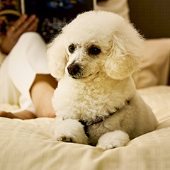 ベッドやソファなど、客室内の備品での粗相を防ぐために、ワンちゃんのしつけ状況に合わせてマナーパンツやウェアを着用してあげてください。