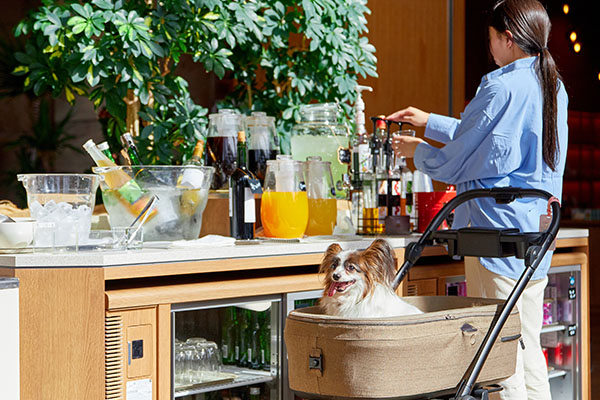 1Fロビーラウンジでは、各種ドリンクに加え、ワンちゃん用のフードやドリンクもご用意しております。海を眺めながら、ゆったりとしたカフェタイムをお過ごしください。