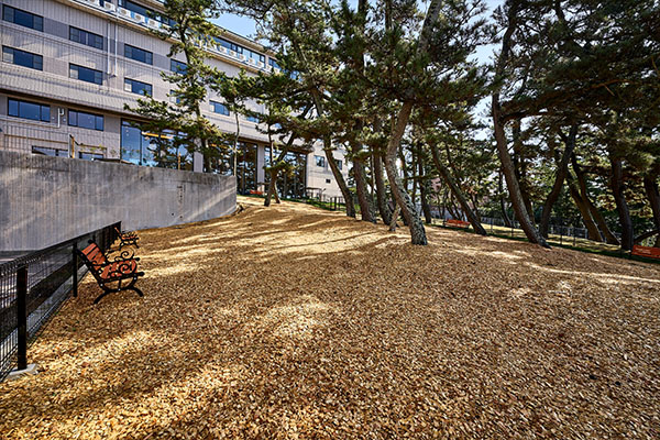 自然の香りも心地よく、リラックス効果が期待できるのも魅力です。ドッグパーク内には松の木を配し、直射日光をやわらげる工夫も。自然豊かな環境の中で、愛犬とのひとときをお楽しみください。