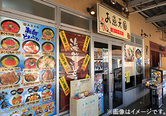 鮮魚や干物を楽しめる人気市場で海の幸を楽しめます。市場の中にある「お食事処 三代目 魚一」ではペットの同伴ができます。