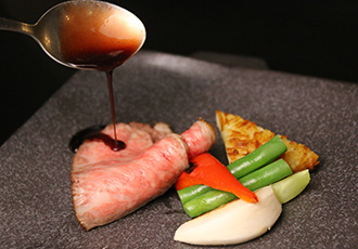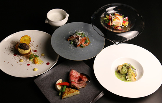 地元名産牛や旬の海鮮、季節の野菜など新鮮な素材をふんだんに使用した、地元食材を活かしたフレンチをご提供します。