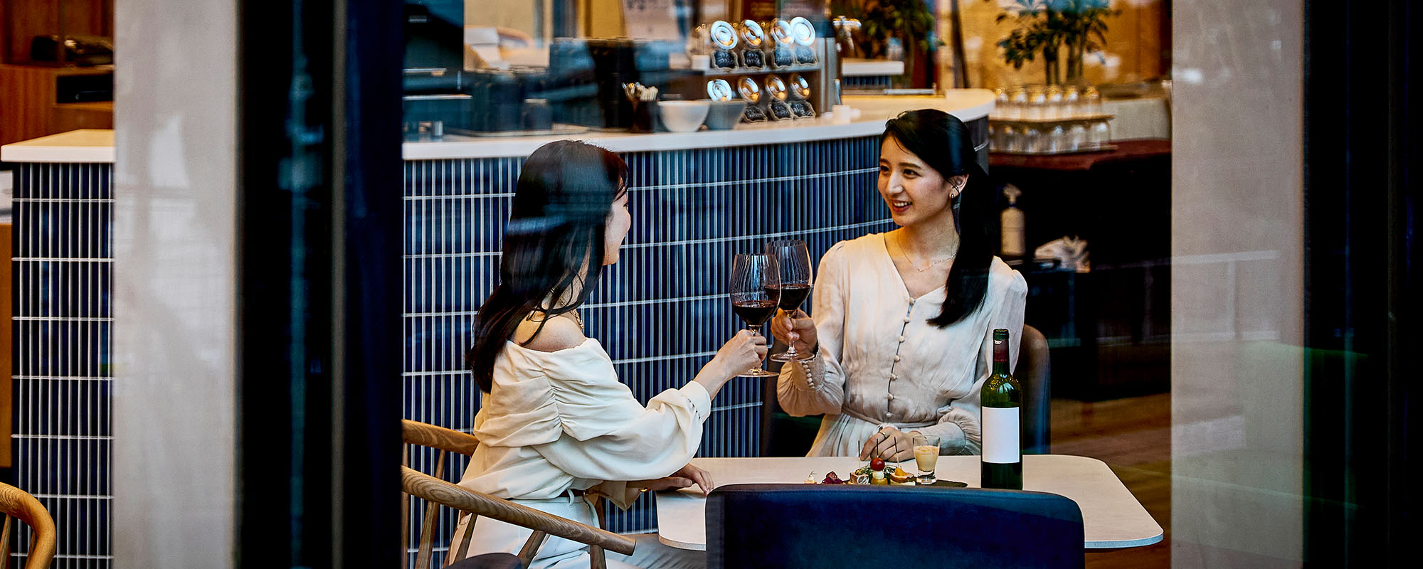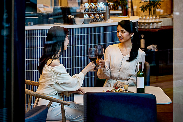 潮風を感じながらグラスを傾け、ゆったりと会話を楽しむ午後。ラウンジでは、ワインやソフトドリンクを自由に楽しめるフリーフローをご用意。好みの一杯を片手に、時間の流れを忘れるような、心地よいひとときをお過ごしください。