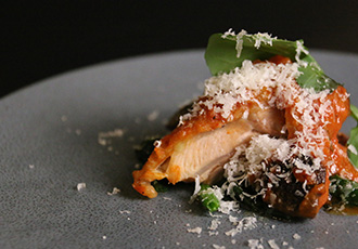 奥久慈軍鶏腿肉のトマト煮 パルミジャーノ・レッジャーノ