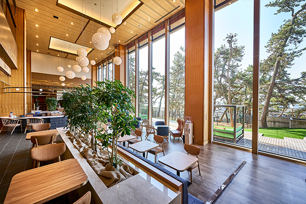 午後は窓から差し込む柔らかな光の中でくつろいだり、館内の施設で思い思いの過ごし方を楽しんだり。夕暮れにはホテルの周辺を散策し、潮風や夕日の色に心を癒される時間を過ごせます。